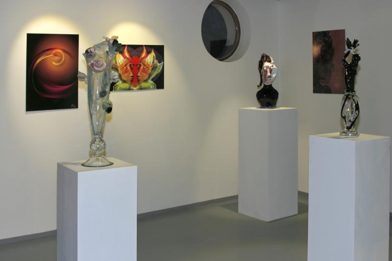 Od 4.12. probíhá výstava „Creo ergo sum“ (tvořím, tedy jsem) v Ajeto muzeu v Novém Boru. Je to nový projekt, který vzešel z hlavy mého kamaráda Vratislava Budského. Ten před čtyřmi měsíci přišel s nápadem udělat grafiky s motivem mých skleněných plastik. Třetím potom byl Petr Fiala. Ten nafotil má díla a sám také upravil fotky. Udělal umělecké fotomontáže vycházející z mých děl.